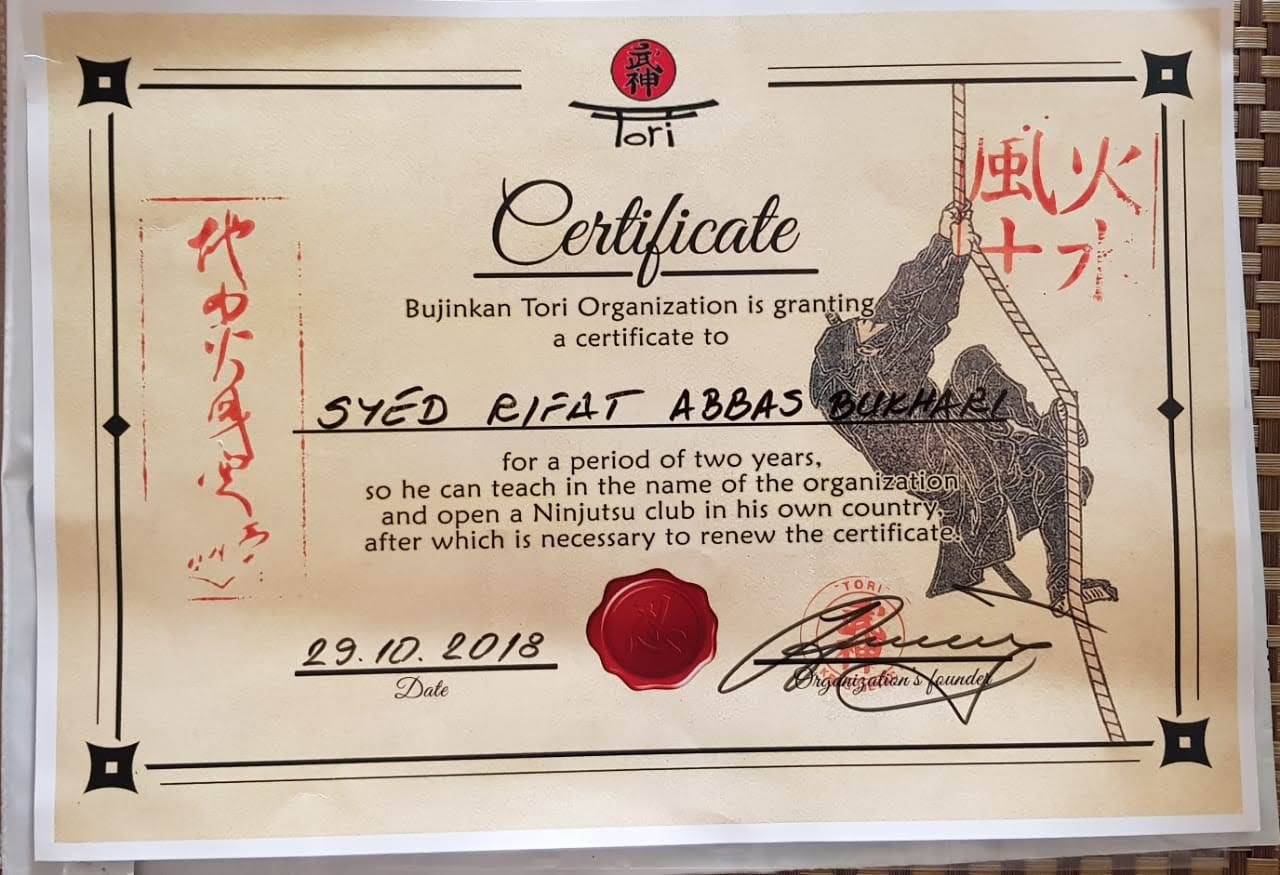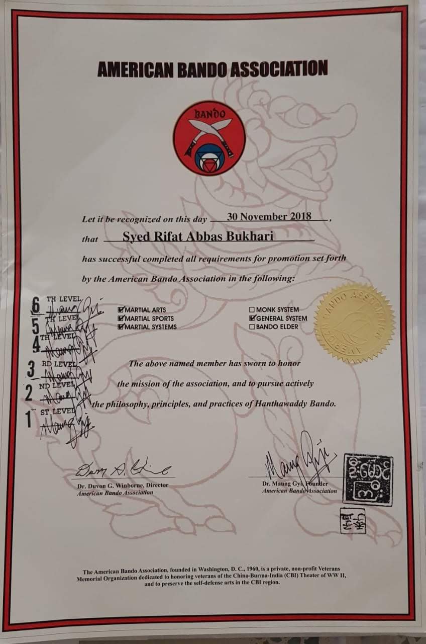 both the systems of Bando and ninjutsu in Pakistan. Conducted many classes and