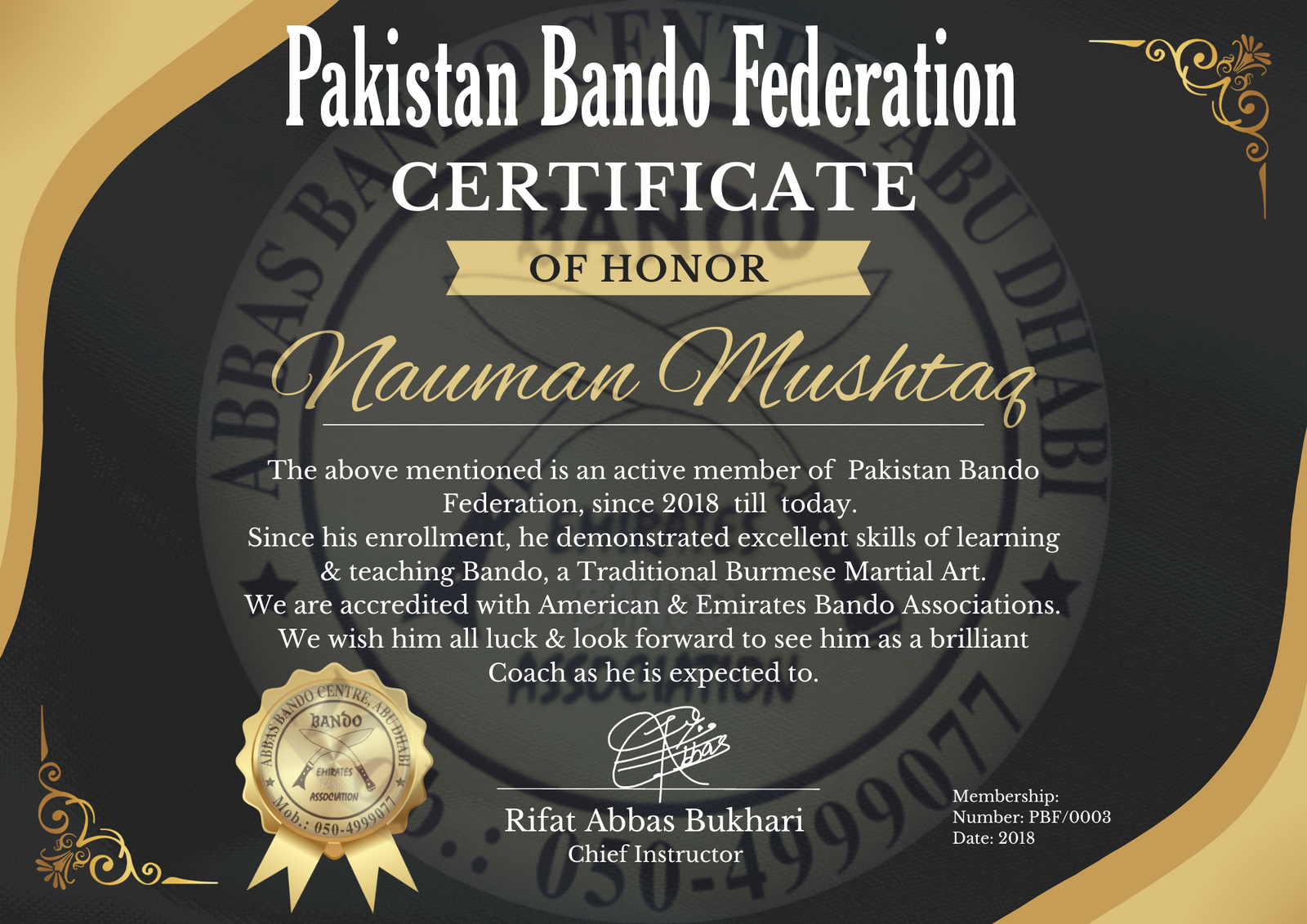 2009. So I became official member of ABA. I found Emirates Bando Association in